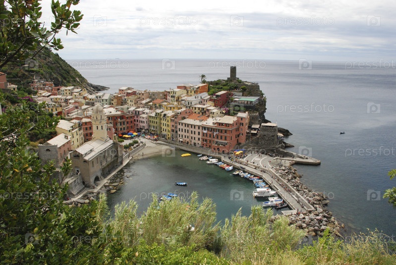 Прекрасный вид на Вернаццу. Это одна из пяти знаменитых красочных деревень национального парка Чинкве-Терре в Италии, подвешенная между морем и сушей на отвесных скалах