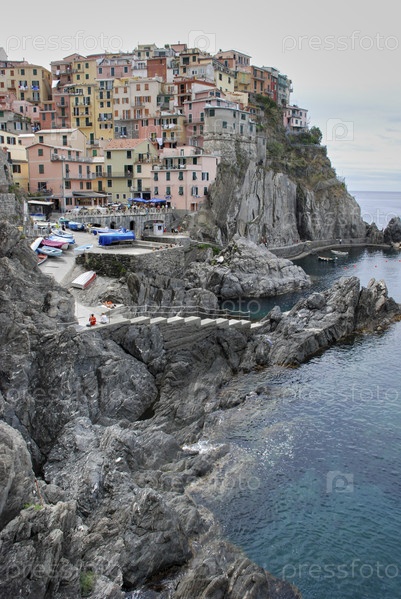 Деревня Манарола в сумерках. Национальный парк Чинкве-Терре, Лигурия