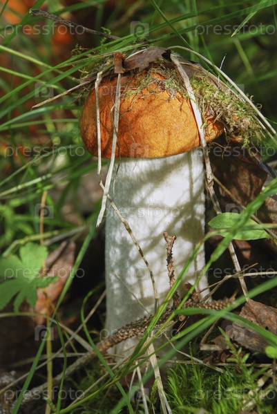 Порчини осень в лесу. Гриб в листве крупным планом