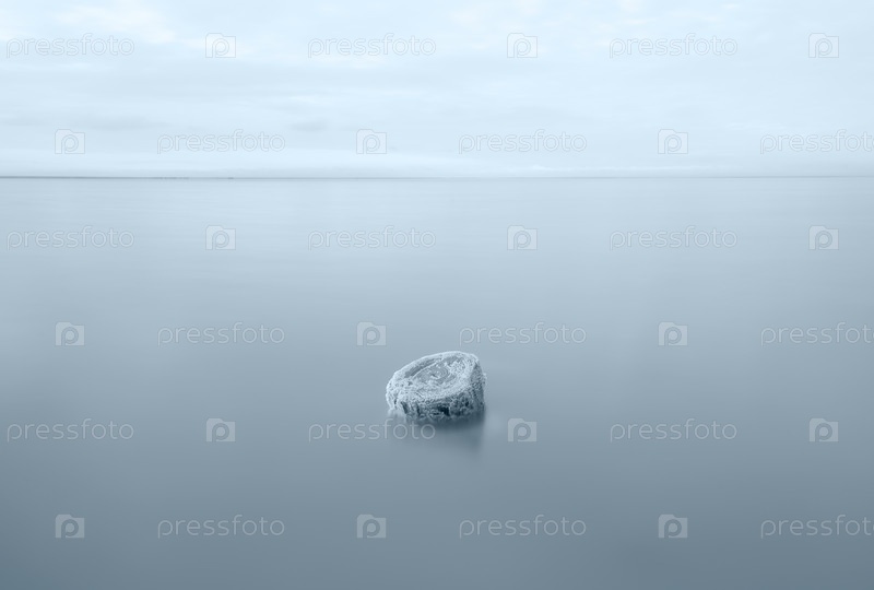 Деревянный столб, покрытый кристаллами соли, торчит над поверхностью рапы одного из самых соленых озер мира Эльтон,