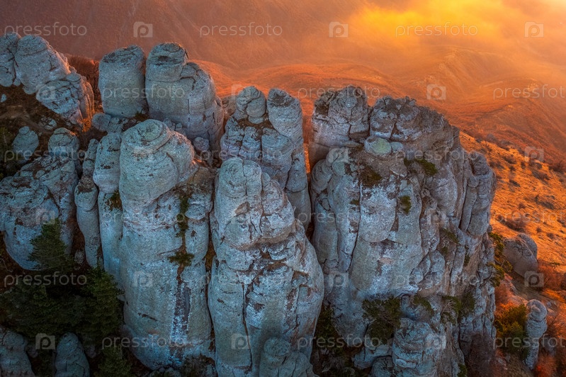 Вид с вершины горы Демерджи на долину привидений во время восхода солнца