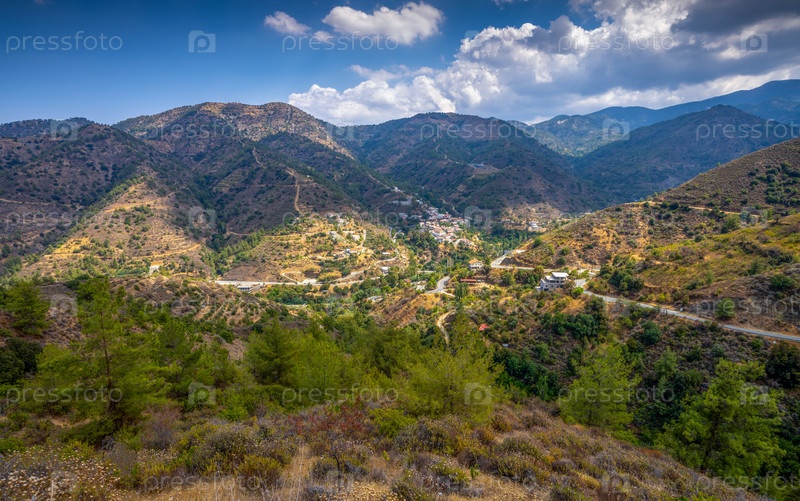 Горная деревня Ойкос в горном массиве Троодос на Кипре