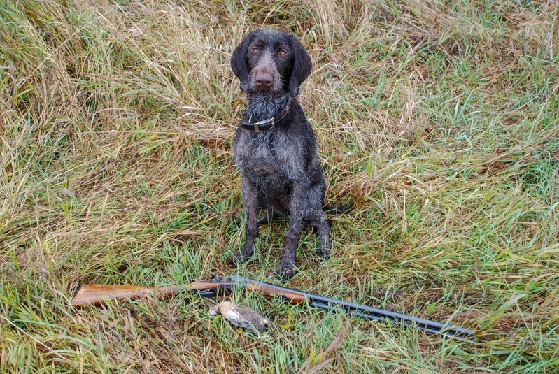 Охотничья собака Дратхаар с перепелом
