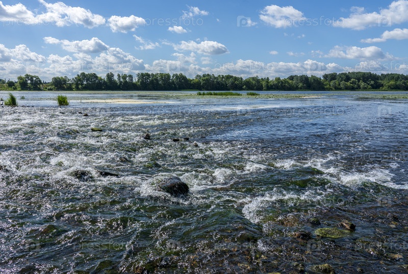 Волшебный пейзаж тропического леса и реки со скалами. Дикая, яркая растительность тропического леса