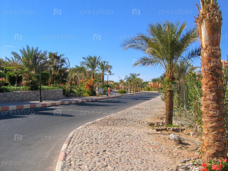 Средиземноморская природа, красивый ландшафт аллеи пальм в Египте