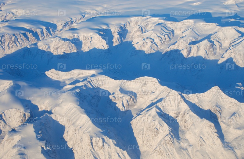 Ледники и горы Гренландии, вид с самолета