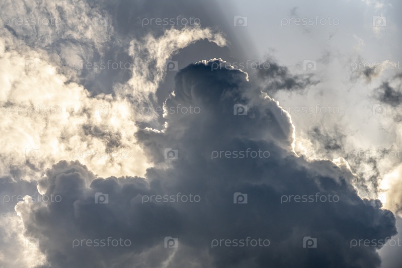 Солнечный луч похож на прожектор, сияющий из-за огромных кучевых облаков