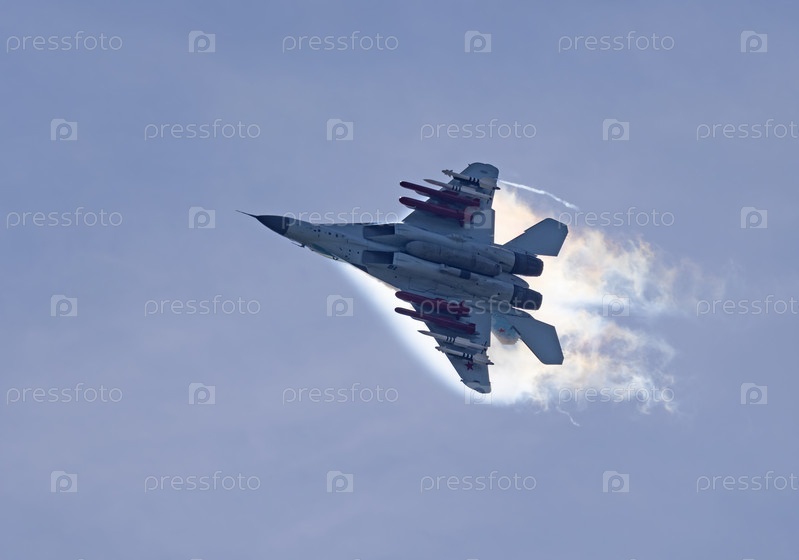 Москва Россия Жуковский аэродром 31 августа 2019 года: пилотажный МиГ-29 выполняет демонстрационный полет международного аэрокосмического салона МАКС-2019