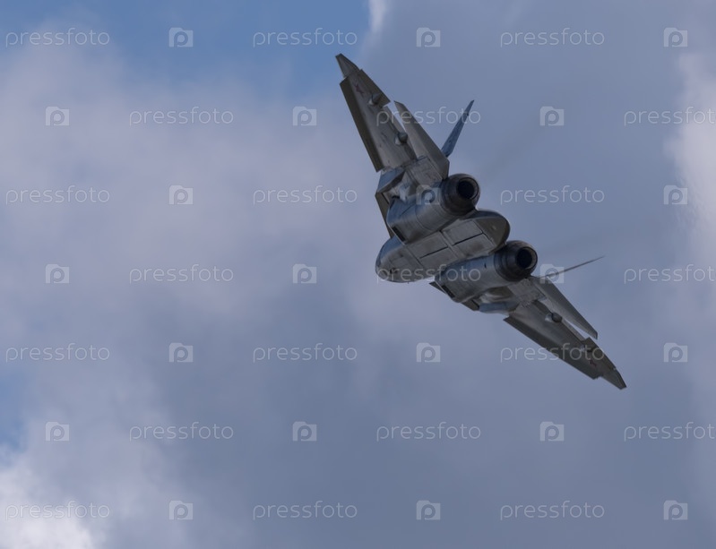 Москва Россия Аэродром Жуковский 25 июля 2021 года: Демонстрация новейшего российского истребителя Су-57 на международном аэрокосмическом салоне МАКС-2021