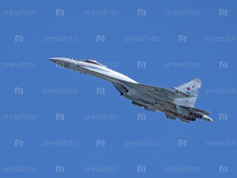 Москва Россия Жуковский Аэродром 25 июля 2021: Пилотажные группы Соколы России на самолетах Су-35 международного аэрокосмического салона МАКС-2021
