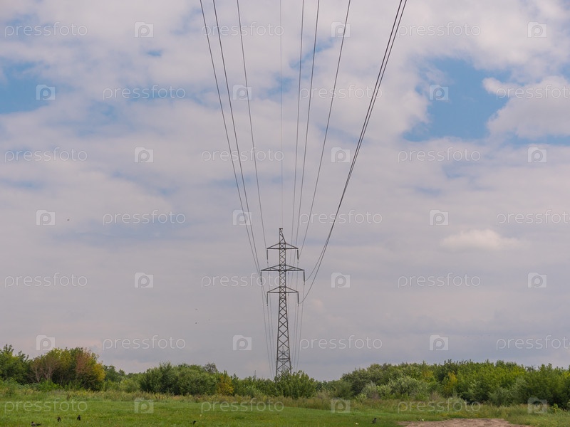 Пасмурное утреннее небо и высоковольтная линия