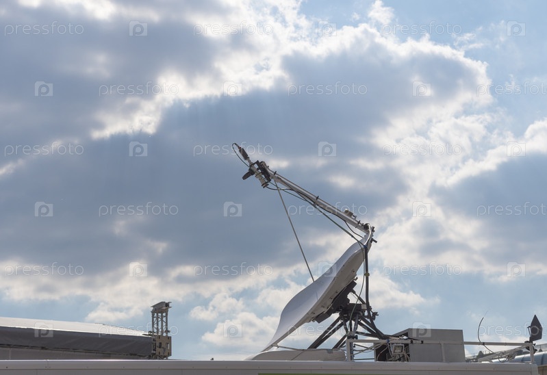 Спутниковая антенна на стене с голубым небом