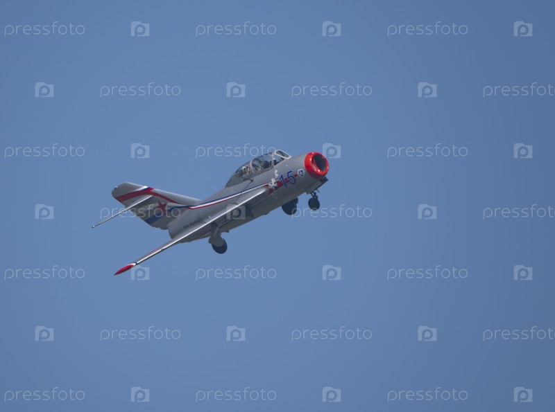 Москва Россия Аэродром Жуковский 31 августа 2019 года: Демонстрация российского МиГ-15 Бис 1120 (Фагот) на международном аэрокосмическом салоне МАКС-2019