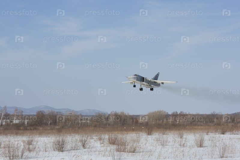 Военный реактивный бомбардировщик Су-24 Фехтовальщик в полете