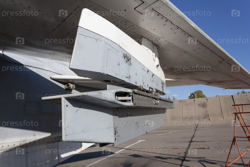 Пилон под крылом военного самолета для подвески ракет и бомб