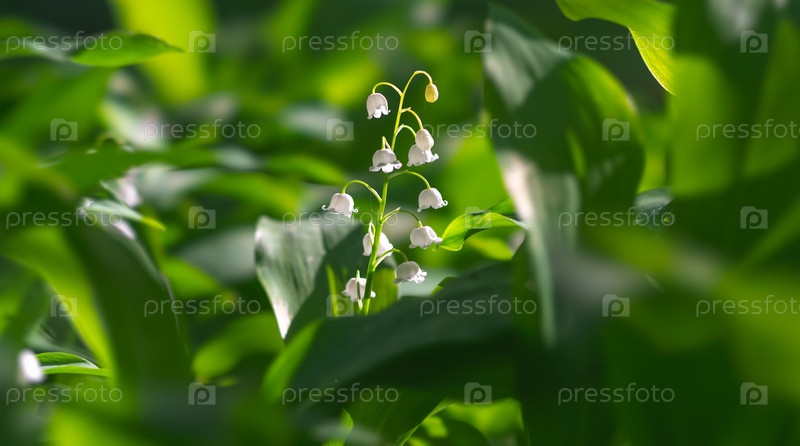 Ландыш цветет на фоне листвы