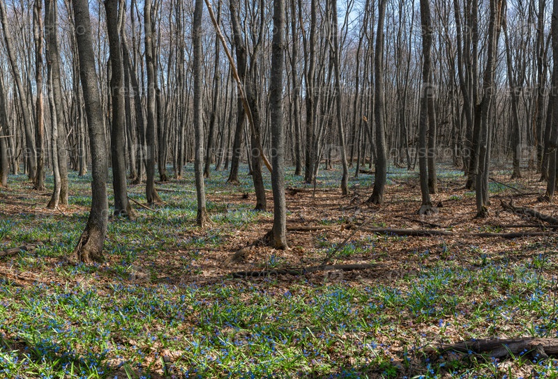 Пролеска цветет в весеннем диком лесу солнечным утром