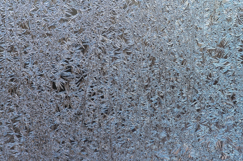 Естественный фон, текстура морозных узоров. Красивые кристаллы льда на стекле во время заморозков