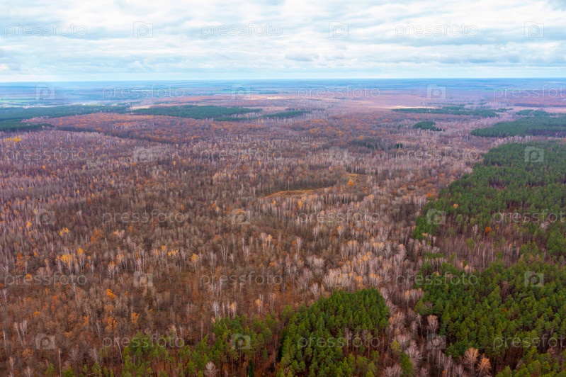 Аэрофотосъемка осеннего леса с большой высоты