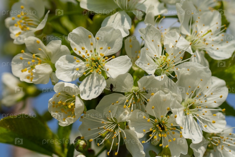 Цветение вишни, весна, много цветков вишни крупным планом, Пасха, открытка