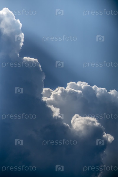 Солнечный луч похож на прожектор, сияющий из-за огромных кучевых облаков
