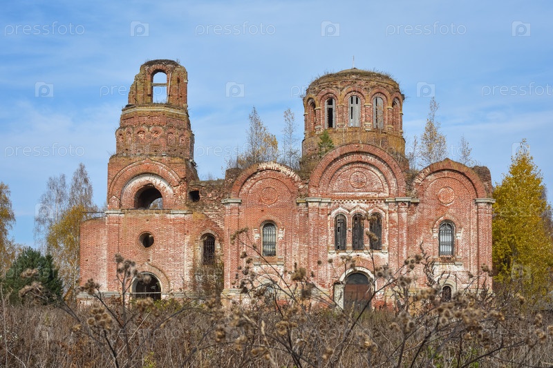 Заброшенная христианская церковь из красного кирпича в глубине России, заброшенное здание в пустыне