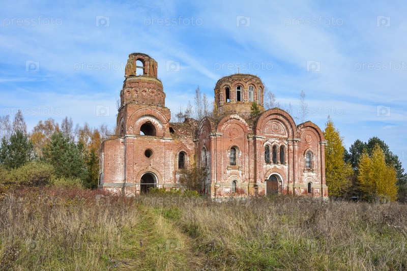 Заброшенная христианская церковь из красного кирпича в глубине России, заброшенное здание в пустыне