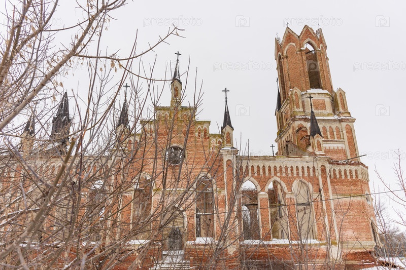 Заброшенная церковь из красного кирпича, заброшенная неоготическая церковь