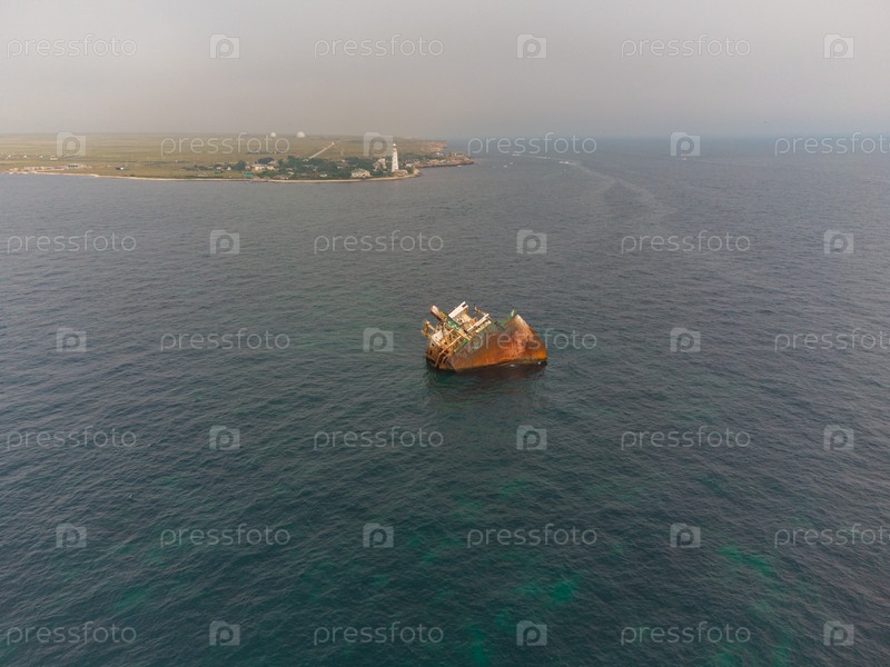 Затонувший корабль, севший на мель транспортный корабль, ржавый остов корабля
