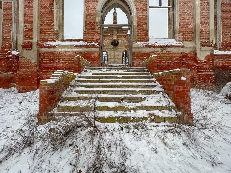Окна и лестница заброшенной церкви