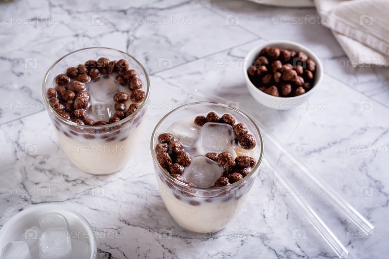 Домашний молочный пузырьковый чай со льдом в стаканах на столе