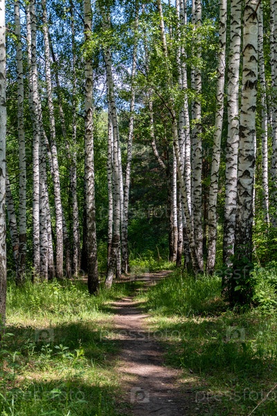 Путь в лесу с солнечным светом и тенями