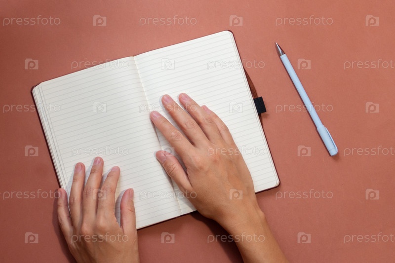 Женская рука держит ручку, готовая написать заметку в дневнике