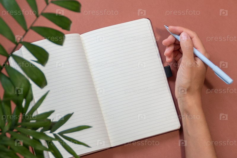 Женская рука держит ручку, готовая написать заметку в дневнике
