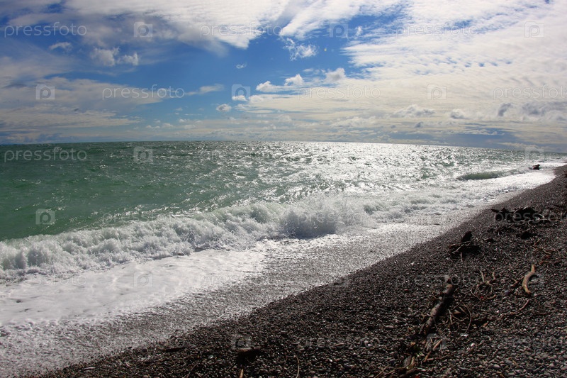 Вид на пляж в осенний день