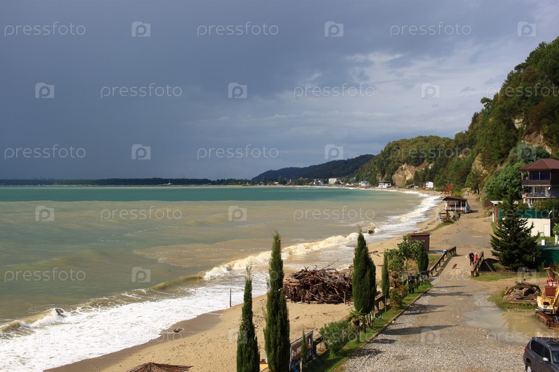 Вид на Пицундский залив в Абхазии в пасмурный день