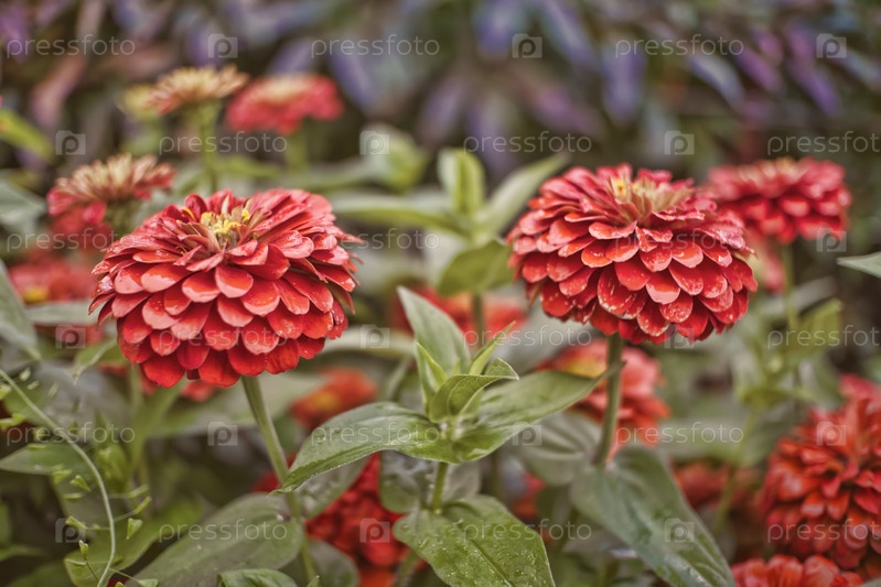 Красные цветы цинии