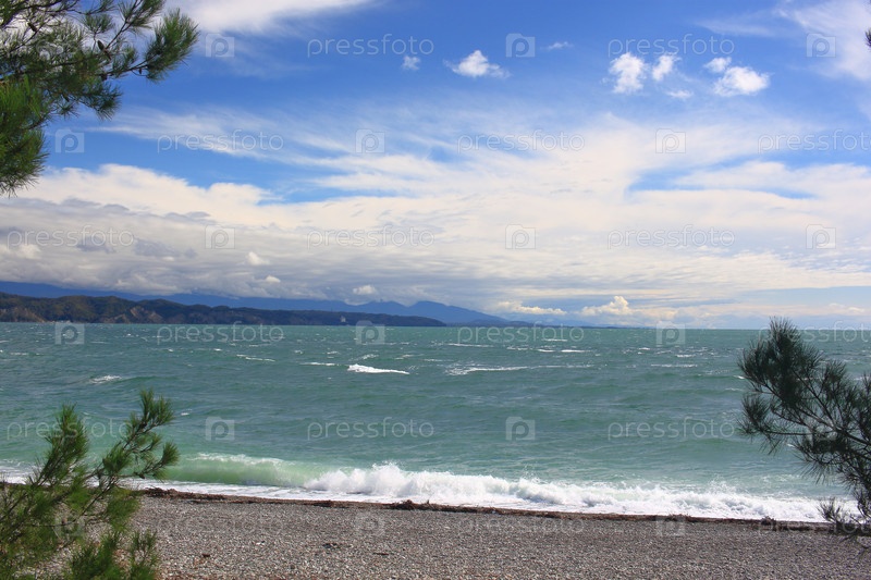 Вид на пляж в осенний день