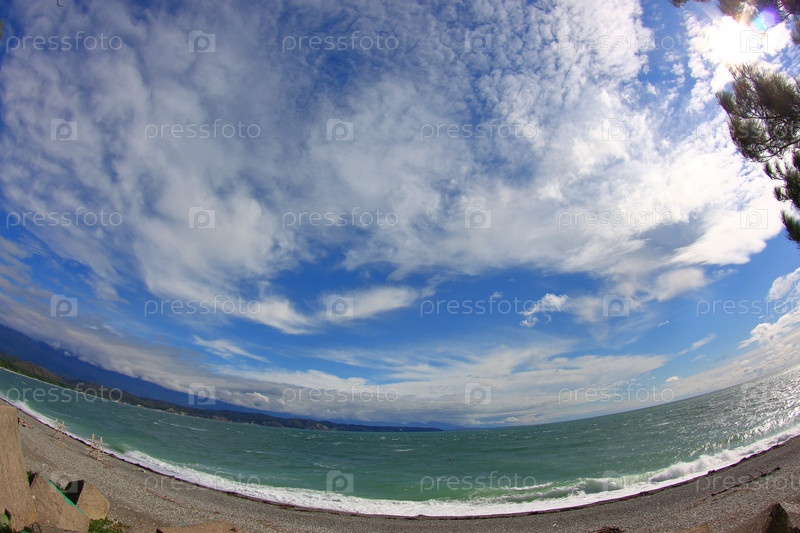 Вид на пляж в осенний день
