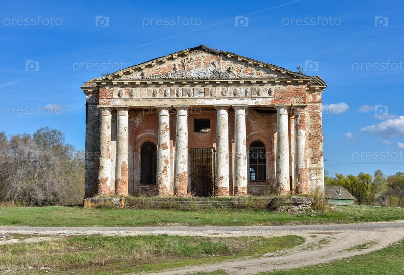 Заброшенная православная церковь, заброшенный храм с колоннами