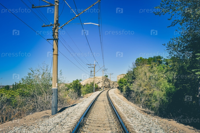 Пустая железная дорога со столбами, железная дорога в горах