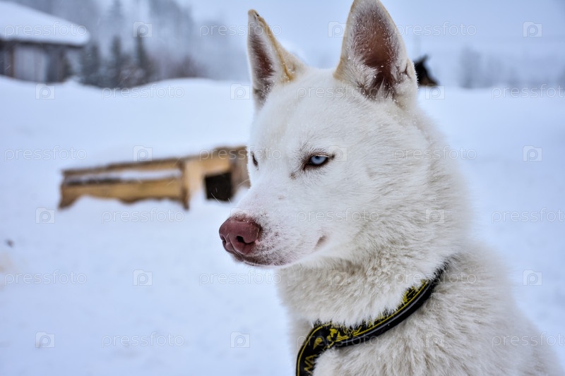 Хаски портрет, собака крупным планом зимой