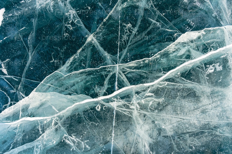 Естественная текстура зимнего льда с белыми пузырьками и трещинами на замерзшем озере. Абстрактный фон льда и трещин на поверхности замерзшего озера Байкал