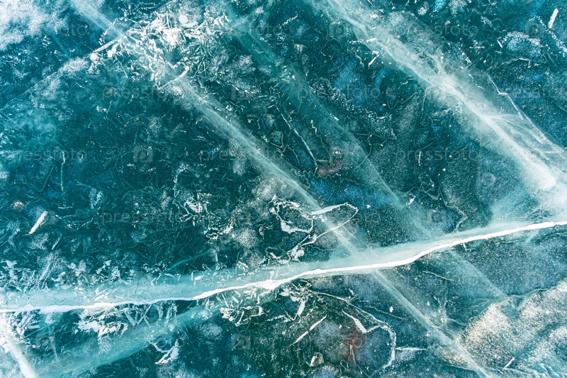 Естественная текстура зимнего льда с белыми пузырьками и трещинами на замерзшем озере. Абстрактный фон льда и трещин на поверхности замерзшего озера Байкал