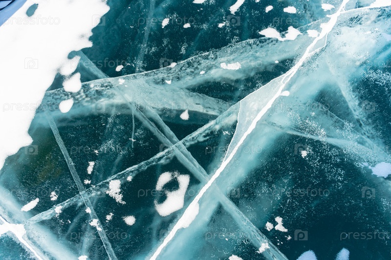 Естественная текстура зимнего льда с белыми пузырьками и трещинами на замерзшем озере. Абстрактный фон льда и трещин на поверхности замерзшего озера Байкал