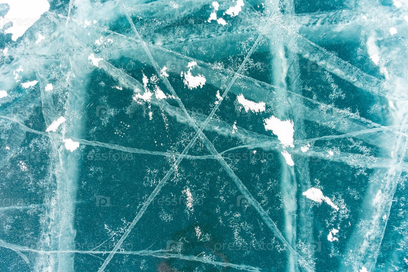 Естественная текстура зимнего льда с белыми пузырьками и трещинами на замерзшем озере. Абстрактный фон льда и трещин на поверхности замерзшего озера Байкал