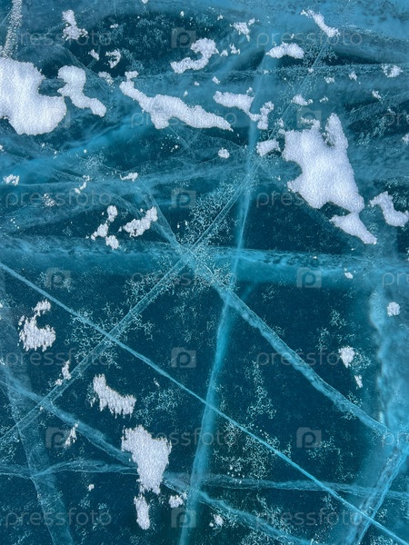 Естественная текстура зимнего льда с белыми пузырьками и трещинами на замерзшем озере. Абстрактный фон льда и трещин на поверхности замерзшего озера Байкал