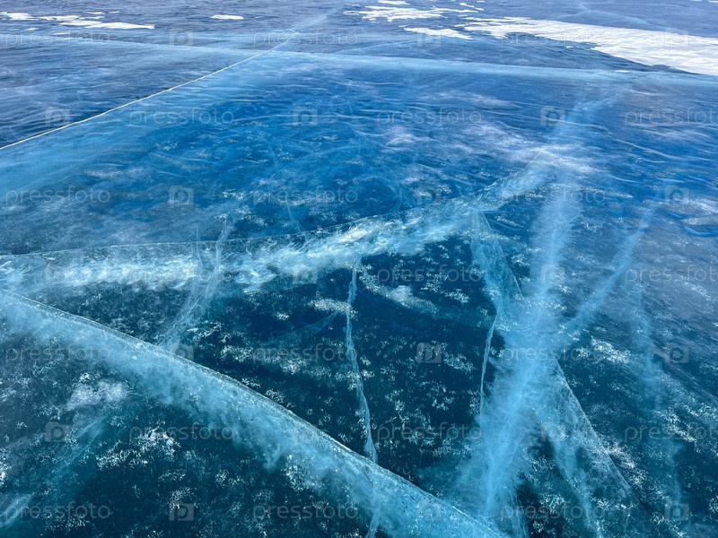 Естественная текстура зимнего льда с белыми пузырьками и трещинами на замерзшем озере. Абстрактный фон льда и трещин на поверхности замерзшего озера Байкал