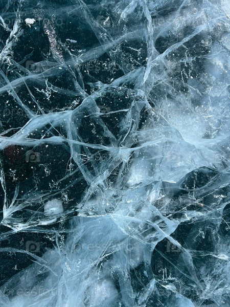 Естественная текстура зимнего льда с белыми пузырьками и трещинами на замерзшем озере. Абстрактный фон льда и трещин на поверхности замерзшего озера Байкал