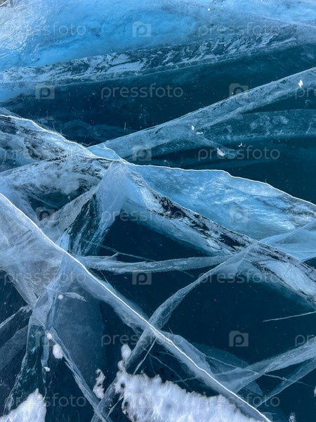 Естественная текстура зимнего льда с белыми пузырьками и трещинами на замерзшем озере. Абстрактный фон льда и трещин на поверхности замерзшего озера Байкал